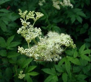 Meadowsweet (Filipendula ulmaria) is an occasional weed in some places, and is a great medicinal plant for many reasons. It contains salicylic acid, the constituent also found in Willow bark from which aspirin was originally synthesized. As such, it is an excellent anti-inflammatory and pain reliever, especially for headaches with a feeling of heat in the head, but also for joint pain.