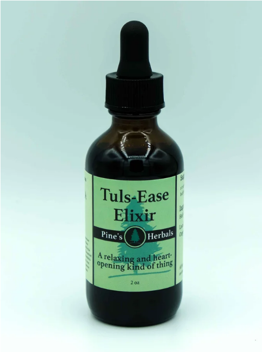 This elixir is made from Holy Basil or Tulsi, a different species of basil than what we make pesto from. It is relaxing, heart-opening and enhances feelings of devotion. It can be taken by itself or a teaspoon or 2 can be mixed with soda water to make a delicious and relaxing herbal soda.